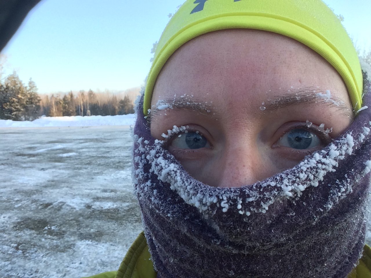 6. Don't worry for a second that you are not getting enough oxygen. Yes, you may be hot and a wet mask is harder to breathe through, but you are not in any danger. Think of nordic skiers, snowshoe runners, alpine climbers and other athletes who mask regularly in cold conditions. None of the dangers in any of these sports arise from mask wearing. Personally, I wore a wool face covering for almost the entire 2018 Millinocket Marathon, which was held in a subzero windchill; if running in a mask were dangerous, that race would have been fatal to some of the athletes.