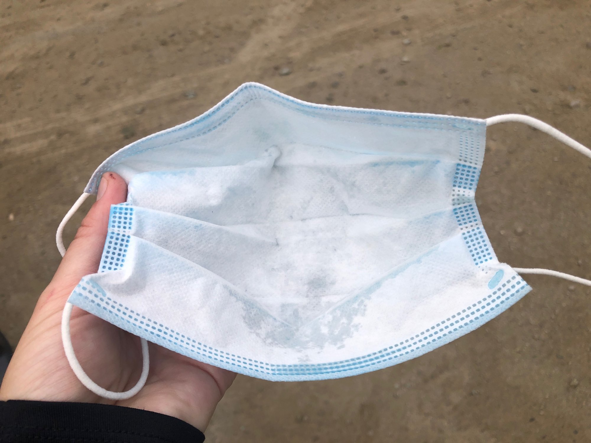 *Pro Tip: Surgical masks are designed to be worn with the white fabric against your face. Think about all those reruns of ER and Grey's Anatomy you've seen. The healthcare workers are masked with the blue side out. The white interior layer of a medical mask is made similarly to the top layer of fabric in a diaper or sanitary napkin--these fabrics are designed to pull moisture away from your skin to keep you comfortable. The blue layer is made to repel water, which will make your run steamy if you wear a surgical mask inside-out.